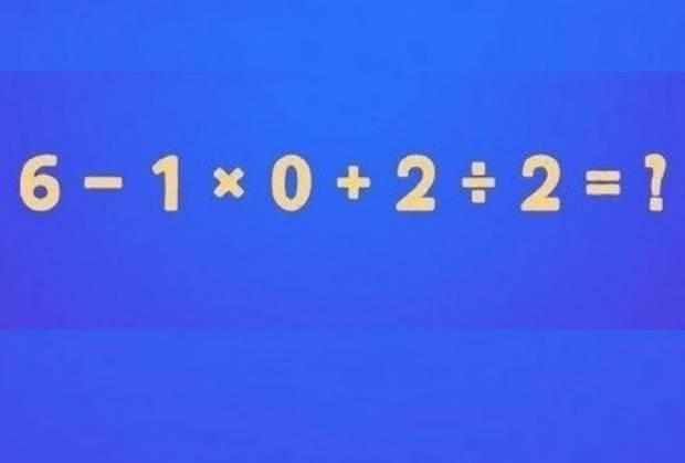 Zadatak je već nekoliko puta postao viralan, a glavna zabluda nastaje kada se prvo od broja 6 oduzme broj 1, zanemarujući prioritet množenja i deljenja. Pravilno rešavanje ide ovako: 6 – 1 × 0 + 2 ÷ 2. Po pravilima matematike prvo se množi i deli, pa se dobije: 6 – 0 + 1 = 7.